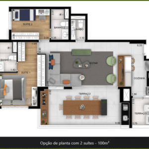 100m² 3 dorms. (1 suite) ou 2 suítes Torre única com vista para o Parque