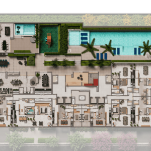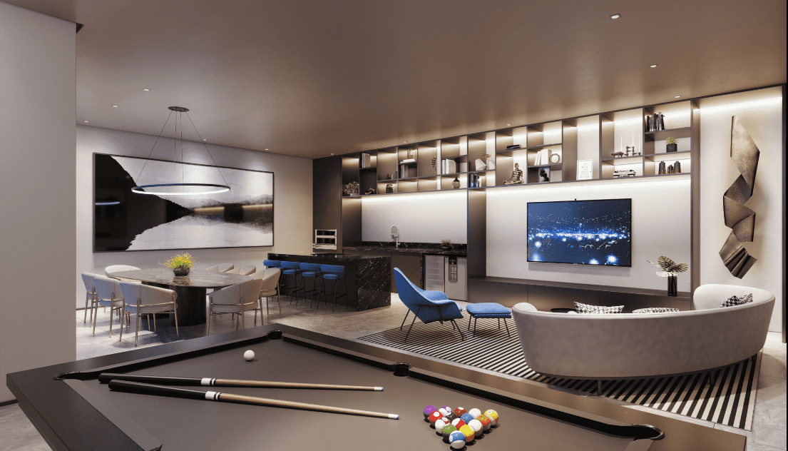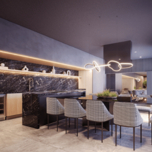 Brinquedoteca, Churrasqueira, Espaço Gourmet, Fitness, , Piscina com raia, Playground, Porte-cochère,  Salão de Festas, Salão de Jogos Adulto, Salão de Jogos Teen, Spa ETC.