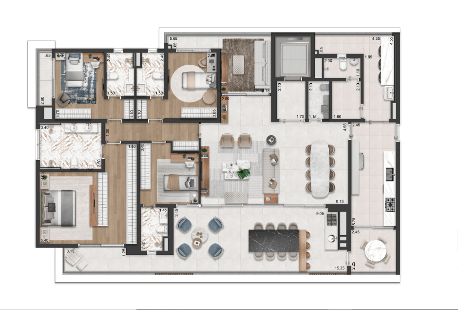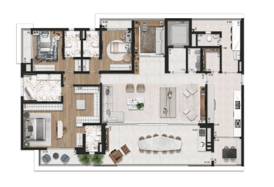 Apartamentos de 254 a 337 m² 3 a 4 suítes 3 a 4 dormitórios 3 a 4 vagas