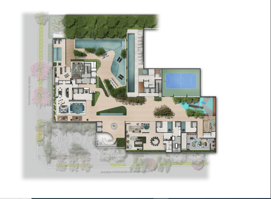 Brinquedoteca, Churrasqueira, Espaço Gourmet, Fitness Piscina Coberta, Pisicina com raia, Playground, Porte-cochère, Quadra recreativa, Salão de Festas, Salão de Jogos Adulto, Salão de Jogos Teen, Spa ETC.