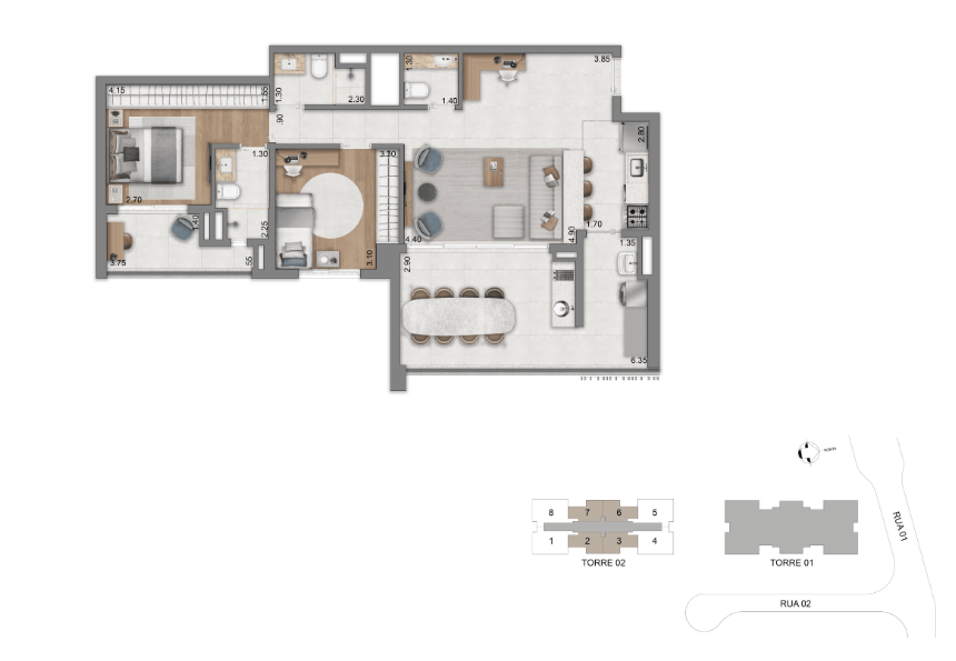 77 a 134 m² 2 a 3 suítes 2 a 3 dormitórios 2 vagas
