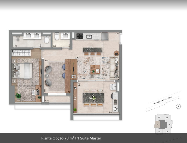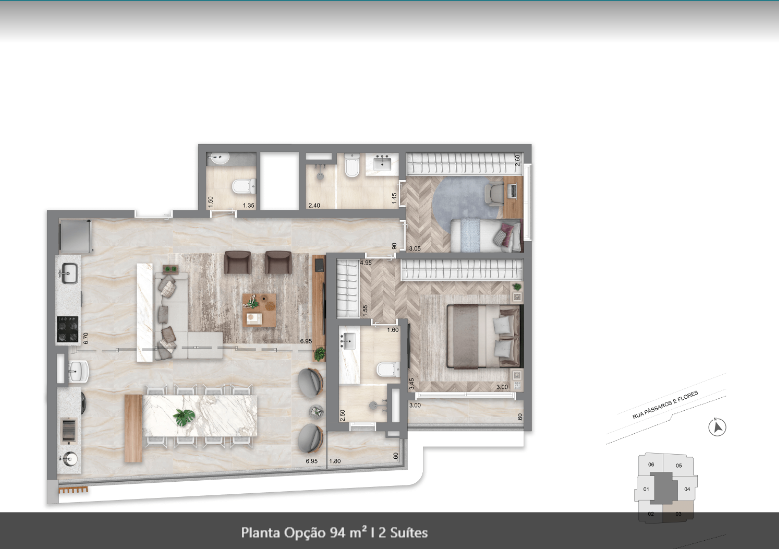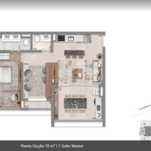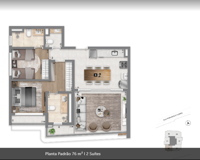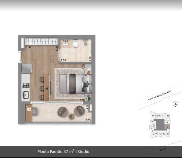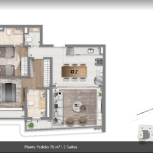 26 m², 32 m², 37 m², 50 m², 70 m², 74 m², 76 m², 94 m² e 183 m² de 1 a 2 suítes, 2 a 3 dormitórios, 1 vaga
