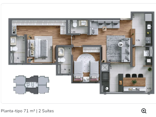 Aptos. de 68 M², 69 M², 71 M², 84 M², 93 M², 108M² E 197 M²,  ATÉ 3 SUÍTES, ATÉ 2 VAGAS